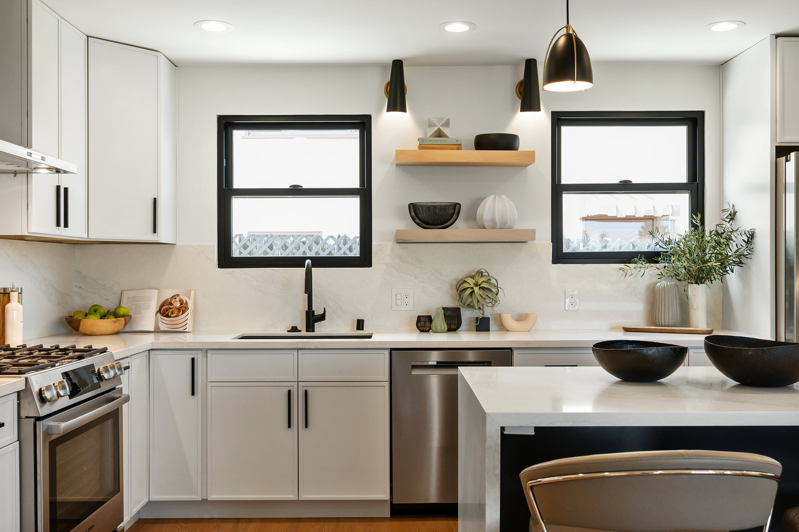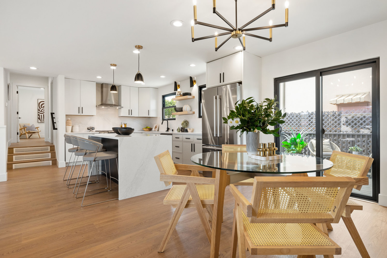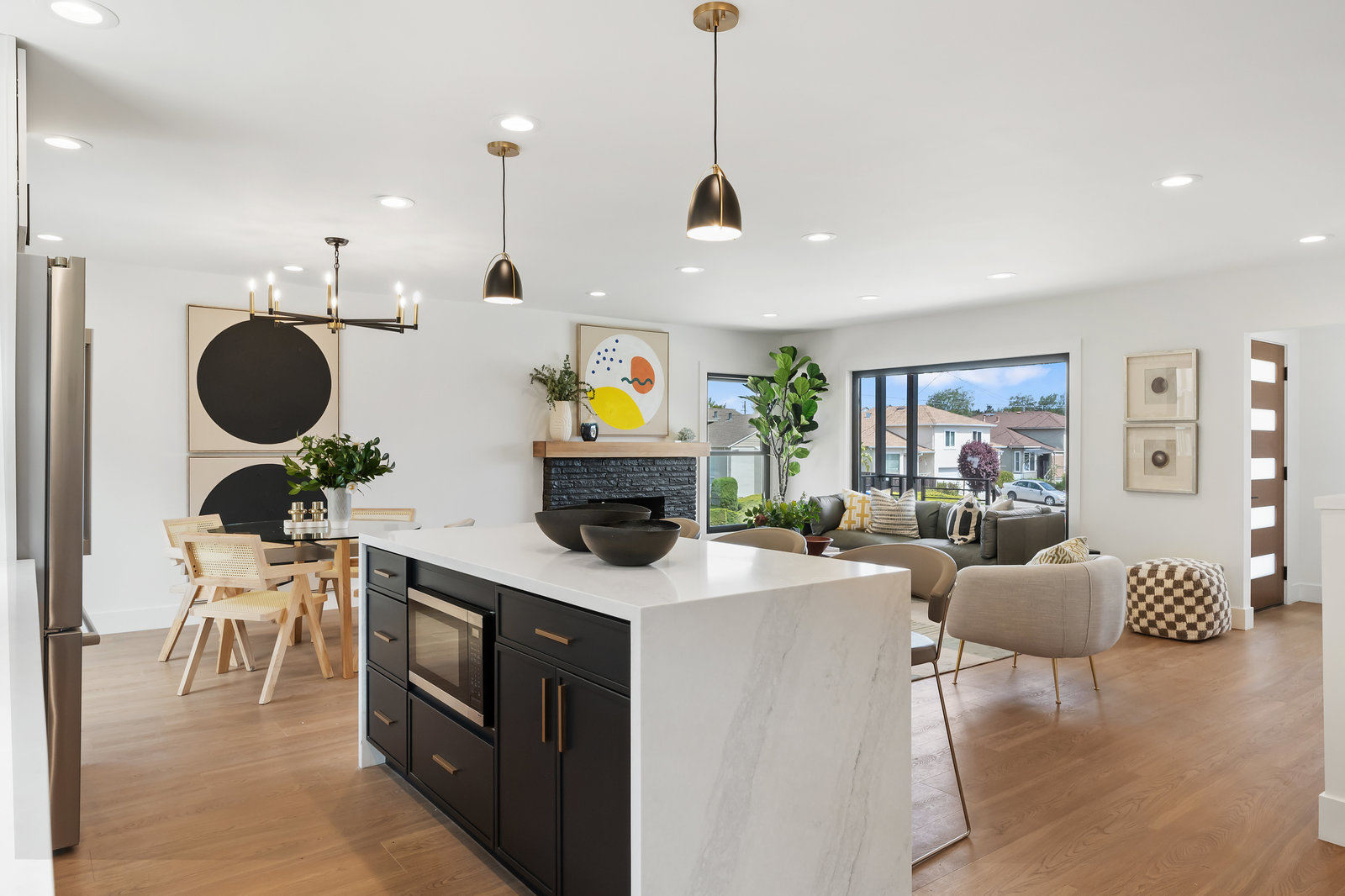 Step into the show-stopping kitchen, where a custom waterfall island and top-of-the-line Bosch appliances make every meal a pleasure. Designer finishes and new custom windows flood the home with natural light, creating a warm and inviting ambiance throughout.